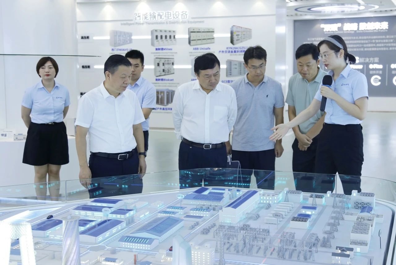 揭建平一行参观长征娱乐电气数字化展厅,深入红色智造车间及数字化智造一线,详细了解企业生产经营、重大项目、产品研发、产业布局等情况。
