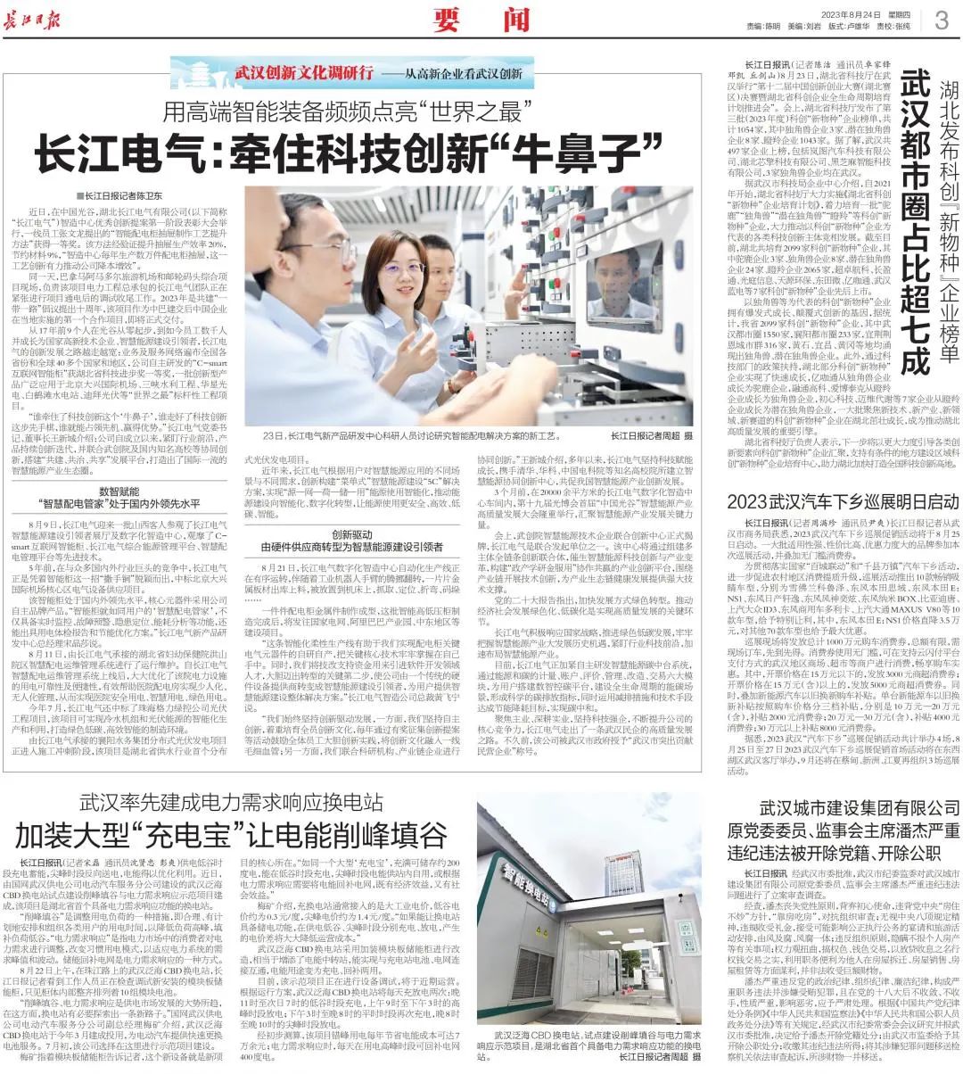 “谁牵住了科技创新这个‘牛鼻子’,谁走好了科技创新这步先手棋,谁就能占领先机、赢得优势。”长征娱乐电气党委书记、董事长王新城介绍:公司自成立以来,紧盯行业前沿,产品持续创新迭代,并联合武创院及国内知名高校等协同创新,搭建“共建、共治、共享”发展平台,打造出了国际一流的智慧能源产业生态圈。