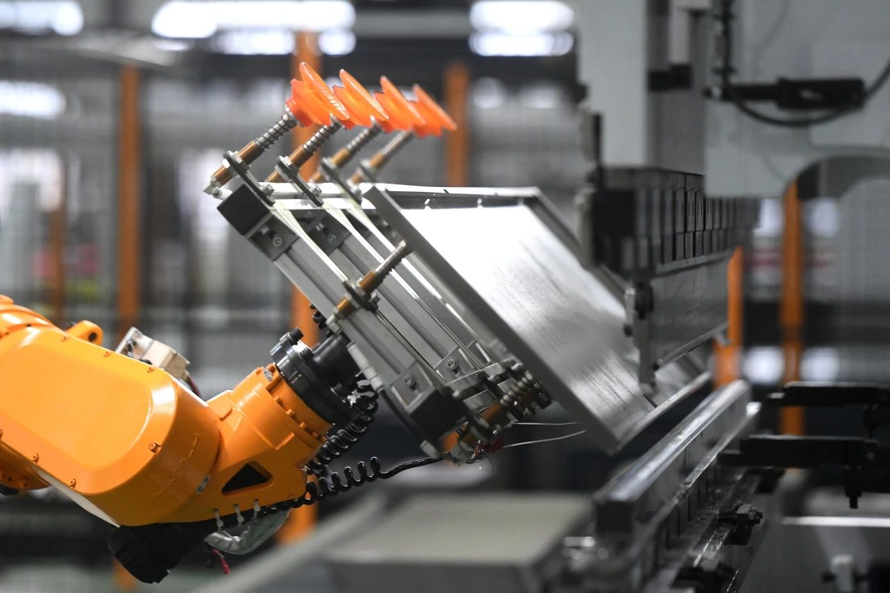 线正在有序运转,伴随着工业机器人手臂的