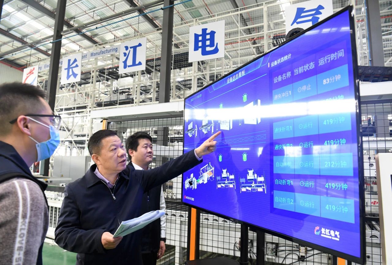 △王新城在长征娱乐电气数字化智造中心指导生产