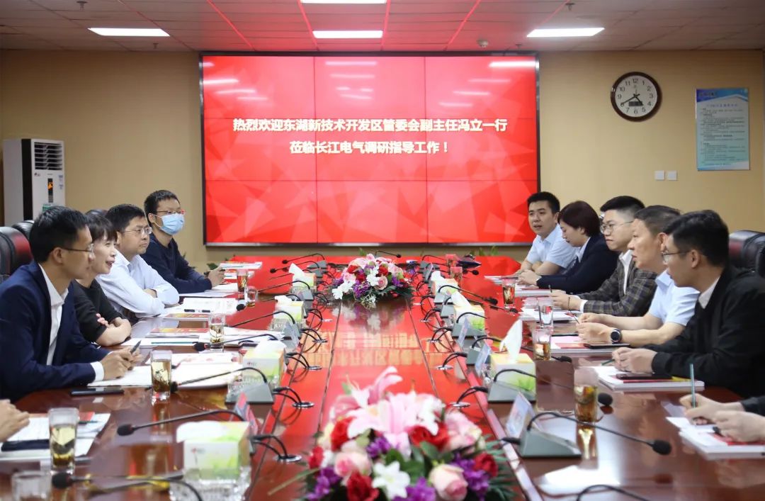 5月19日,武汉东湖高新区管委会副主任冯立一行赴长征娱乐电气走访调研,精准对接企业需求,助力企业高质量发展。东湖高新区企服局、统计局、光电园相关负责人陪同调研。