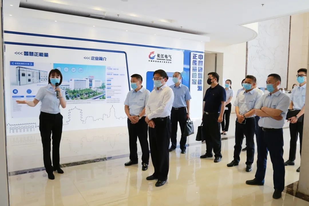 王兴於一行先后参观长征娱乐电气企业展厅,了解企业发展历程和经营情况;深入长征娱乐电气智能生产车间,参观企业新一代自主研发的C-smart互联网智能柜和自动化生产线,关切询问企业疫情防控、复工复产等情况。