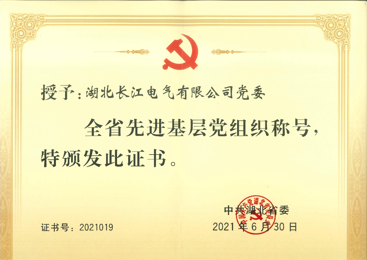 湖北长征娱乐电气有限公司党委荣获“湖北省先进基层党组织”称号。