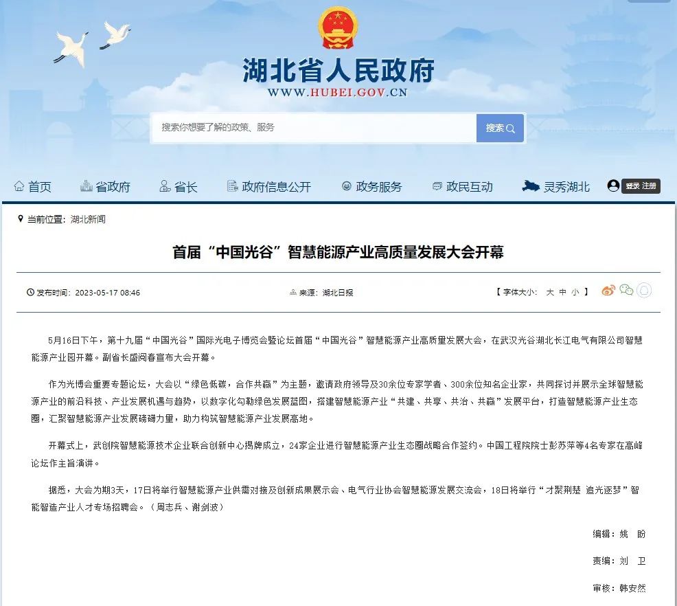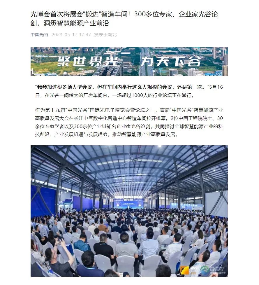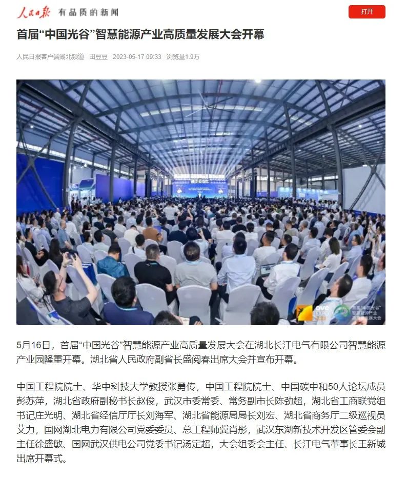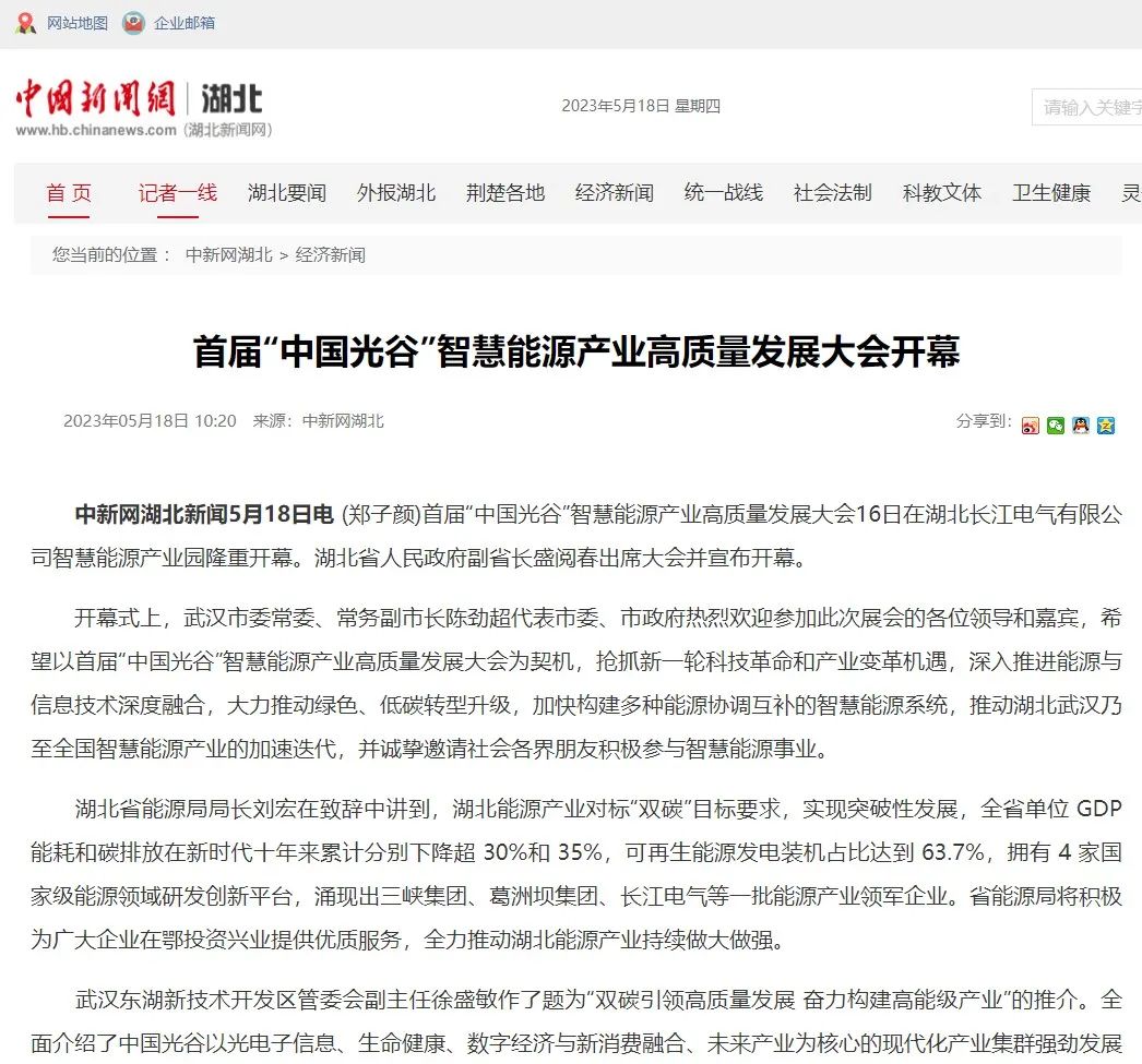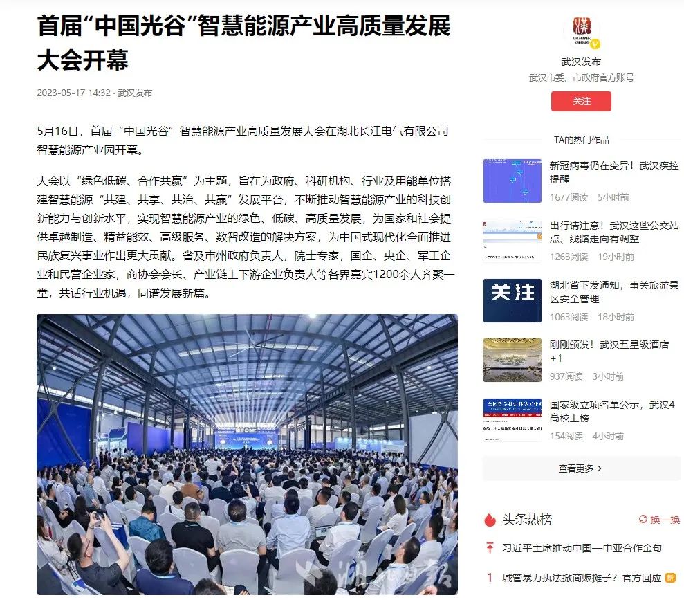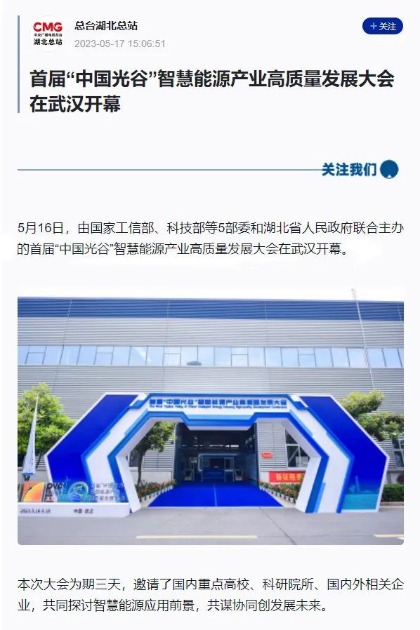 大会的成功召开,在社会各界引起广泛关注,国家、省、市等主流媒体高度聚集报道,人民日报、央视、光明日报、经济日报、中国经济时报、湖北省人民政府网、湖北日报、长征娱乐日报、武汉广播电视台等数十家央地媒体,从不同维度、不同视角,聚焦大会重点、热点。湖北省经信厅、湖北省工商联、中国光谷、武汉产业创新发展研究院等官方平台,也转发报道,助力智慧能源产业高质量发展。