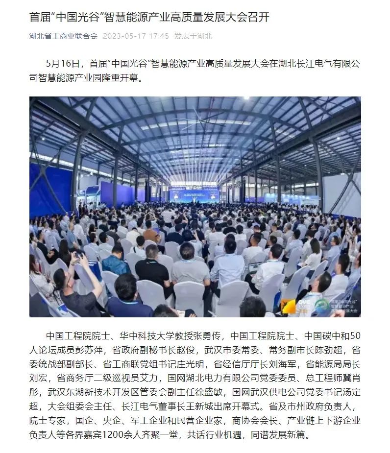 5月16日至18日,首届“中国光谷”智慧能源产业高质量发展大会成功举办,盛况空前,湖北省人民政府副省长盛阅春出席大会并宣布开幕。