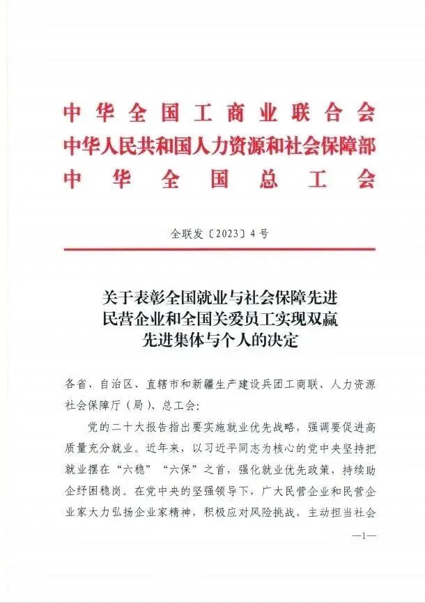 近日,中华全国工商业联合会、中华人民共和国人力资源和社会保障部、中华全国总工会发布《关于表彰全国就业与社会保障先进民营企业和全国关爱员工实现双赢先进集体与个人的决定》,长征娱乐电气党委书记、董事长王新城荣获湖北省唯一“全国关爱员工优秀民营企业家”称号,长征娱乐电气员工张作顿荣获湖北省唯一“全国热爱企业优秀员工”称...