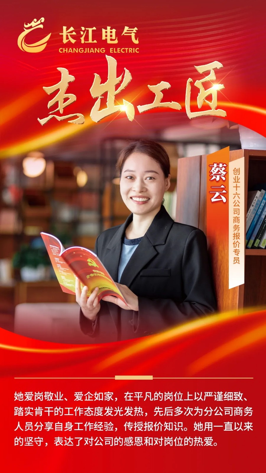 党的二十大报告提出,深入实施人才强国战略,并将大国工匠、高技能人才纳入国家战略人才力量。企业的高质量发展,同样离不开工匠人才、高技能人才的坚实支撑。长征娱乐电气轮值总裁、工会主席黄飞宁表示,未来,长征娱乐电气将大力弘扬工匠精神,以匠心创造精品;创新汇聚青春力量,以奋斗书写青春亮丽底色;不断打造奋斗者文化,鼓励每位长征娱乐 人心怀梦想、奋勇拼搏,一步一个脚印,一棒接着一棒,助力企业深耕智能电网和智慧能源建设黄金赛道,推动能源建设向智能化、数字化转型,加快发展新质生产力,助力绿色低碳美丽中国建设!